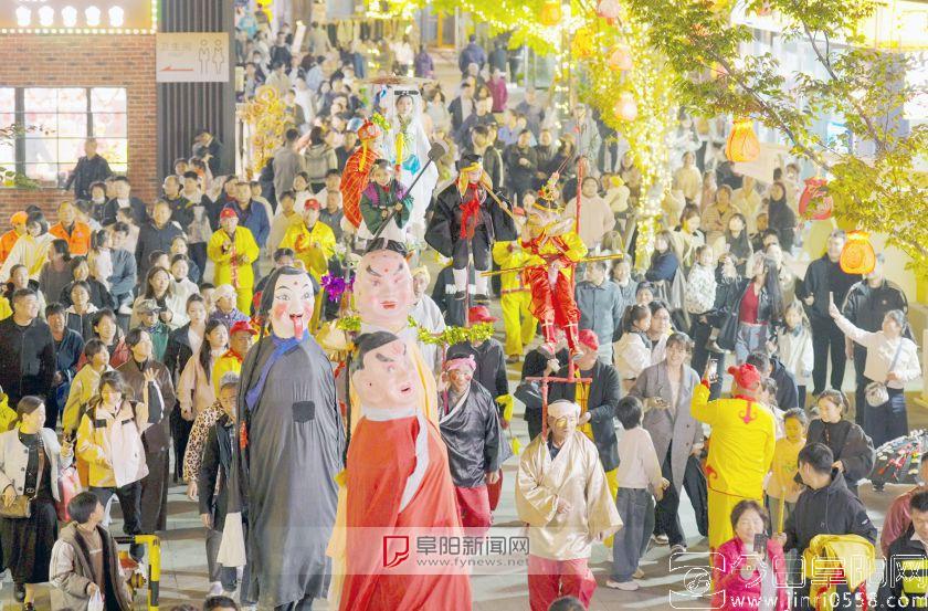 文艺表演区域,皖北四市的啦啦队喊着各自的口号前来助威,现场活力满满;非遗肘阁、川剧变脸、踩高跷等表演惊艳亮相,引得阵阵喝彩;“古代名人美食家”互动环节,让参与互动的市民仿佛穿越千年;光影变幻间,宋·LIVE