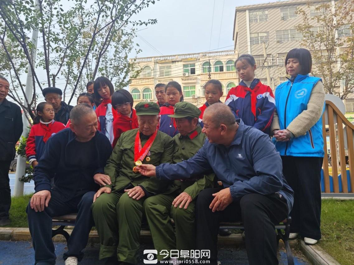 在中国人民志愿军抗美援朝出国作战 75 周年纪念日来临之际,阜南县鹿城镇红旗社区新时代文明实践站于 10 月 24 日在一职高口袋公园开展红色教育活动,邀请抗美援朝老兵陶广忠为青少年讲述抗美援朝的烽火故事。活动中,鹿城镇人大代表、红旗社区党总支书记冷大喜表达了对陶广忠的亲切关心,彰显了社区对革命老兵的尊崇与关怀。老兵陶广忠以亲身经历为青少...
